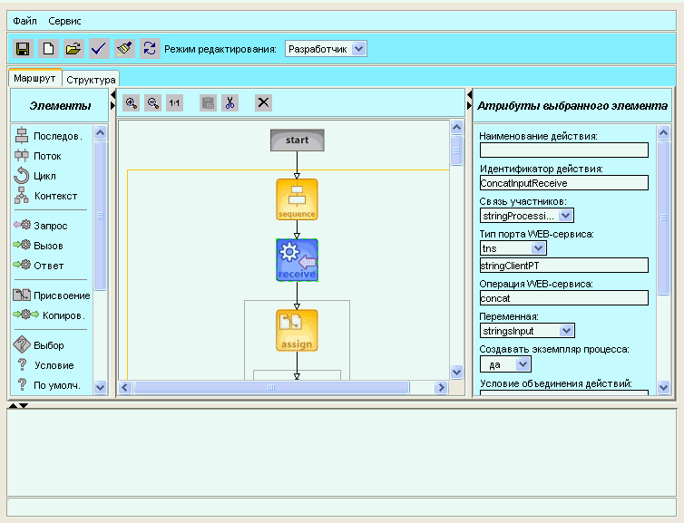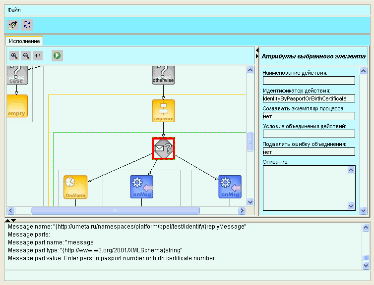 Рис. 4. Клиентский интерфейс интерпретатора описаний рабочих процессов