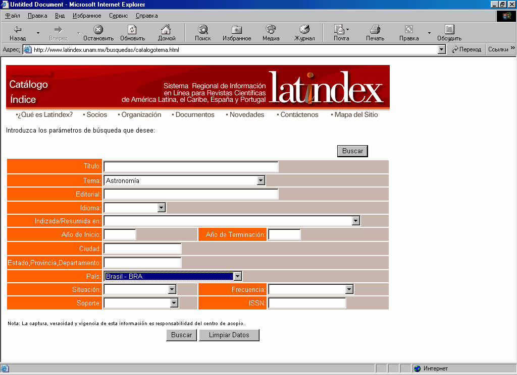 Интернет - каталог периодических изданий LATINDEX