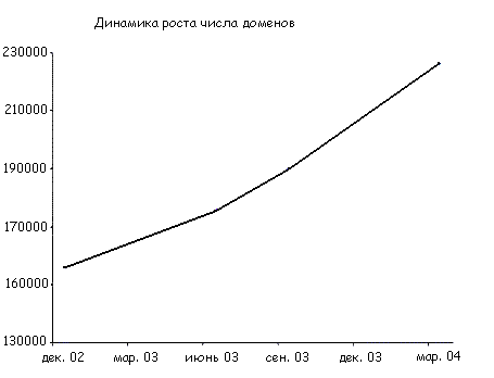 Одновременно с ростом числа пользователей росло и число Интернет ресурсов. Ниже приведен график роста числа доменов (домен – сетевое имя или его часть), начиная с декабря 2002 года. [Доклад “Статистика развития российского сегмента Интернета” Материал предоставлен RU-Center, при подготовке статьи использованы данные ICANN, Минсвязи РФ, РосНИИРОС, RU-CENTER, ФОМ, Nielsen/NetRating.]