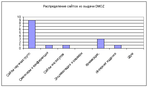 Рис.3 Распределение сайтов из выдачи DMOZ по запросу “fullerene”