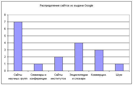 Рис. 2 Распределение по типам сайтов из выдачи Google, запрос “fullerene”
