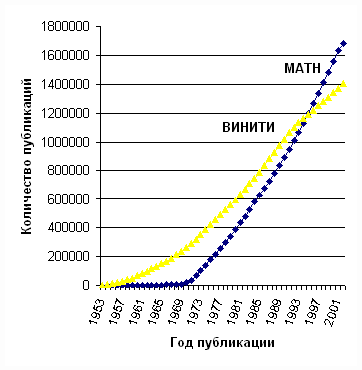 Рис. 5 Рост ретрофонда математической литературы в специализированных БД MATH и ВИНИТИ