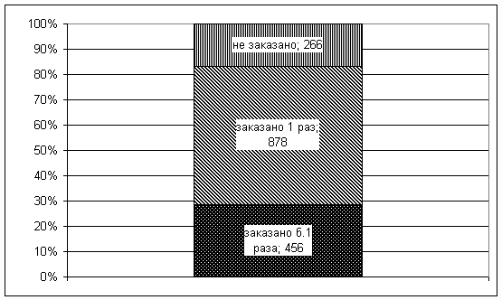 Как видно из рис. 2, около 30% всех отобранных статей было заказано более 1 раза. Всего заказано 83% статей. По тем или иным причинам, не заказанными остались 17% статей.