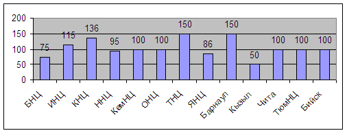 Обеспеченность ПК библиотечных специалистов по научным центрам СО РАН на 1.01.09 г. в процентном отношении показана на рисунке 1.