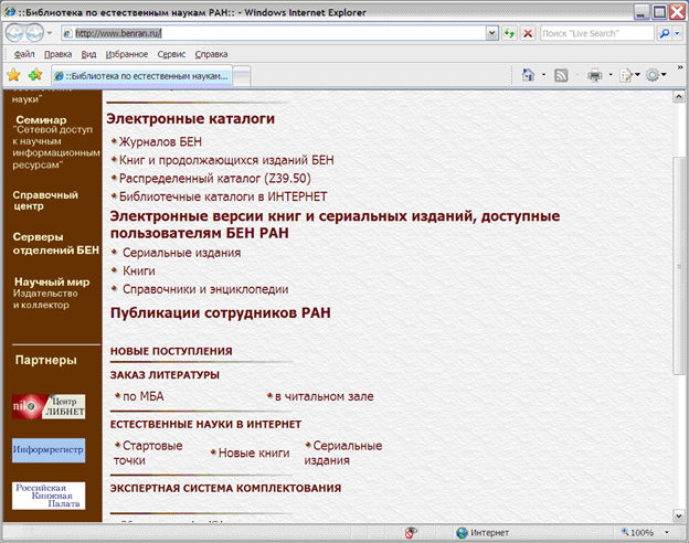Рис. 2. Сайт БЕН РАН