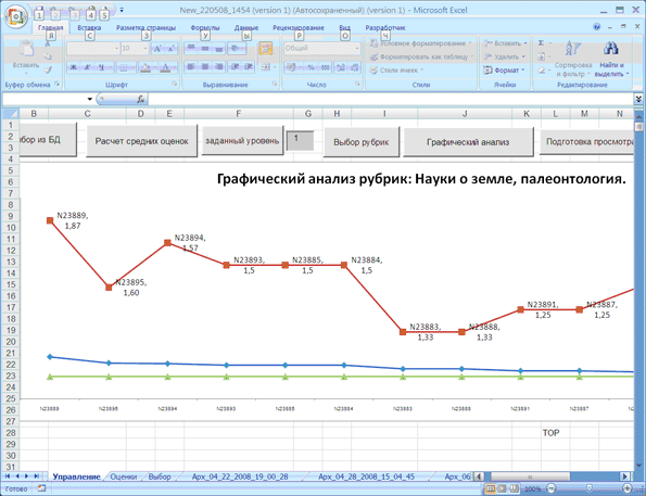 Информация об изданиях с оценками экспертов поступает на автоматизированное рабочее место комплектатора (АРМ-К) для проведения анализа (в том числе графического). До недавнего времени эта информация формировалась исключительно в виде таблиц, работать с которыми комплектаторам, как показала практика, было достаточно неудобно, поскольку каждая таблица имела большой объём (в одной таблице содержалась информация о 200-250 изданиях), не содержала необходимой для качественного анализа информации об экспертах и т.д. Процесс анализа экспертных оценок был значительно упрощен с появлением графического представления результатов экспертиз. В 2008 г. были разработаны и внедрены в технологию комплектования отечественной литературой программные средства, реализованные в среде EXCEL, позволяющие проводить качественный анализ информации об изданиях и оценках экспертов. Они обеспечивают удобный интерфейс, ориентированный на специалистов-комплектаторов.