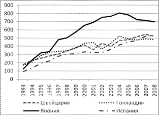 Рис. 3. Динамика роста количества государств-партнеров (Россия) 1993-2008 гг. |